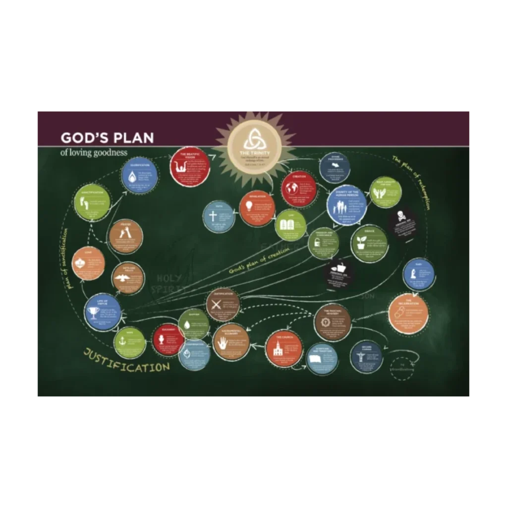 God’s Loving Plan of Loving Goodness map shows the individual doctrines in relation to the working of God’s plan and to Ephesians 1:3-14. This infographic serves as an introduction to the organic unity of God’s revelation.